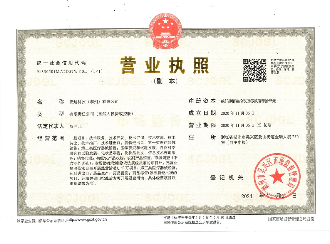 宏越科技(湖州)有限公司,成立于2020年11月。公司主要從事藥物研究及藥品國內(nèi)注冊上市與產(chǎn)業(yè)化的新型藥品MAH持有人企業(yè)。公司擁有先進的藥品研發(fā)理念,結(jié)合科學嚴謹?shù)馁|(zhì)量研究和管理,實現(xiàn)藥品項目的注冊申報以及MAH持有,最終實現(xiàn)產(chǎn)業(yè)化。
